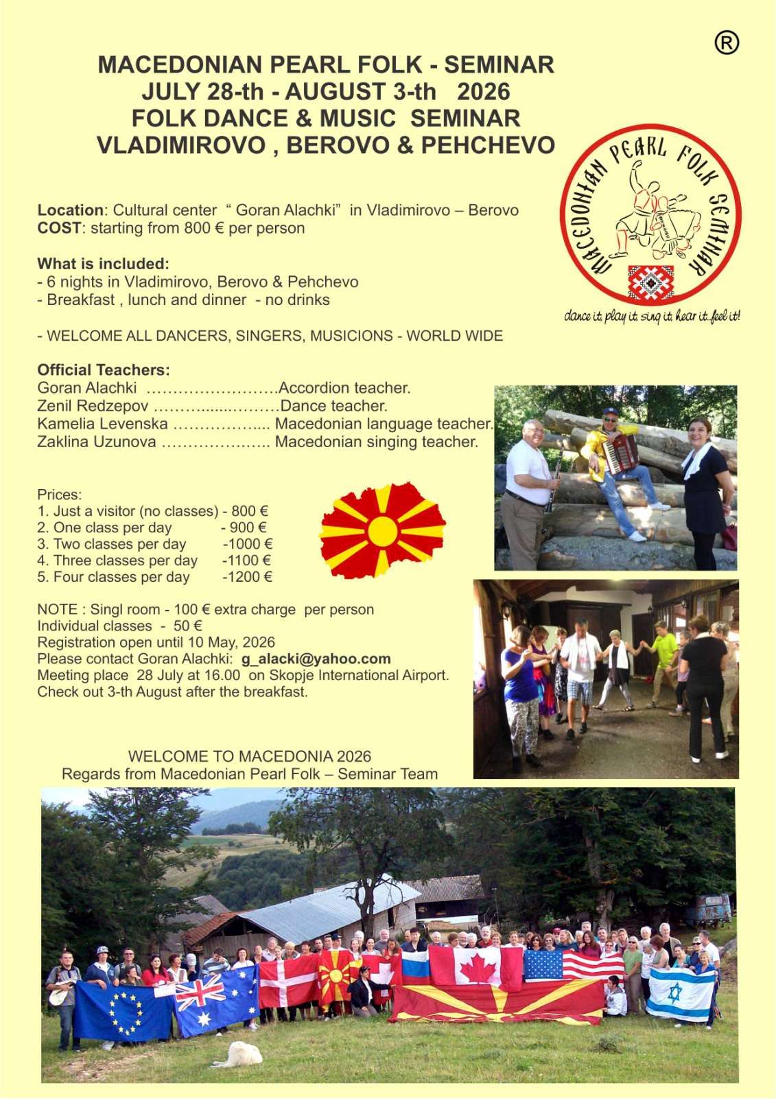 | MAK | 28.07.-03.08.2026 | Goran Alački, Vladimirovo, Berovo. | ℹ️ | ±1.000 |